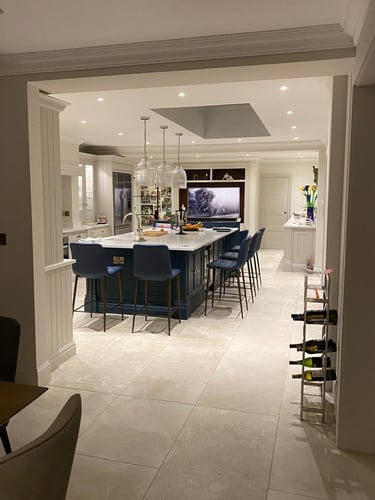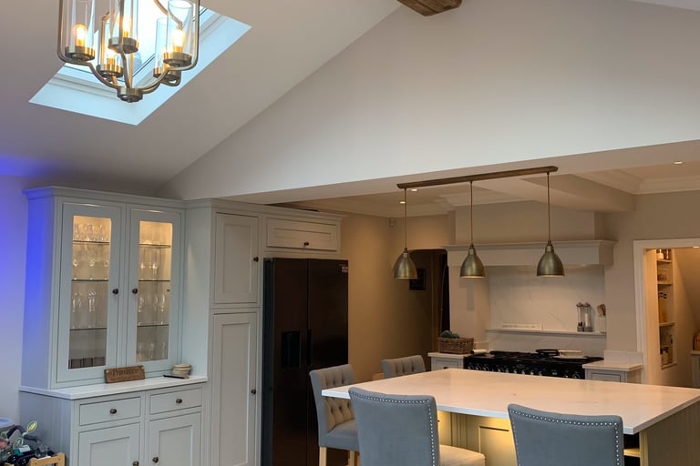 On this project we carried out a full rewire of the property after an EICR found numerous defects within the existing installation. We then worked with the clients to install lighting in this lovely kitchen space